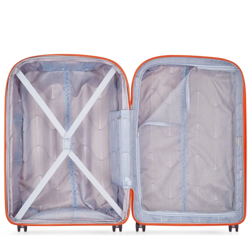 Cette valise rigide Clavel 82 cm possède un volume entièrement optimisé, ne pesant que 4.450 kg pour 136 Litres, c’est une gamme très légère chez Delsey. Son intérieur est scindé en deux compartiments doublés. Chacun est munis de sangles réglables dont un qui se ferme par le biais d’un plateau de séparation zippé qui permet de maintenir vos effets personnels en place.