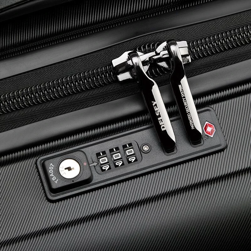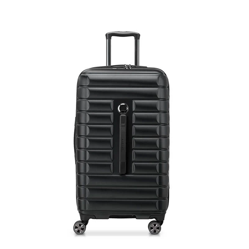 En terme de transport, ce bagage de taille L Delsey offre la possibilité d’être tracté de manière fluide grâce à ses 4 doubles roulettes multidirectionnelles, et une barre trolley télescopique double tube. Il est aussi possible de le tenir à main grâce à ses 3 poignées de portage : supérieure, latérale et frontale (en position horizontale).