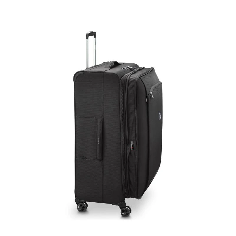 A l’intérieur de cette valise de taille L Delsey, un compartiment principal et unique est à disposition et offre une capacité d’accueil de 108 litres. Cet espace spacieux entièrement doublé est équipé de 2 sangles de maintien ajustables, parfait pour maintenir ses affaires en place durant un voyage. Il y a également directement sous le rabat supérieur une grande poche zippée, elle même dotée d’une poche à zip et d’un porte-étiquette transparent. La doublure de ce bagage est amovible et lavable à 30° en machine. Equipé d’un soufflet d’extension, le volume peut être augmenté jusqu’à 10 litres supplémentaires.