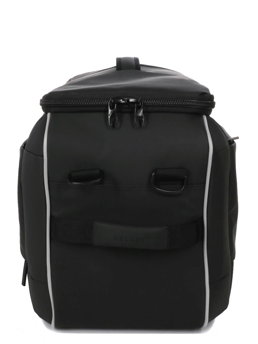 Le sac multiusage Delsey Aventure dispose de nombreux espaces de rangement. Son vaste compartiment rectangulaire accueille tout le nécessaire pour des séjours d’une à deux semaines. L’ouverture zippée en U offre un accès immédiat à l’ensemble de son contenu. Deux sangles élastiques cousues au fond du compartiment évitent que les effets personnels se déplient pendant le trajet. Pratique, une grande poche, qui s’ouvre par un zip à l’avant du sac, est prévue pour isoler les chaussures ou le linge sale du reste des affaires. Le compartiment contient également une grande poche zippée en maille filet où placer par exemple le linge de corps, deux poches ouvertes, une poche moussée pour ordinateur jusqu’à 15.6 pouces et une longue poche plate zippée dont les parois en plastique permettent d’y placer des flacons de liquide, pour minimiser les éventuelles fuites. Les accessoires utiles pendant le trajet (écouteurs, coussin et masque de voyage) se glissent dans la poche frontale qui comporte une poche anti-RFID pour protéger les données de votre passeport ou de votre carte bancaire. Les objets plus précieux se placent de préférence dans la poche arrière zippée.