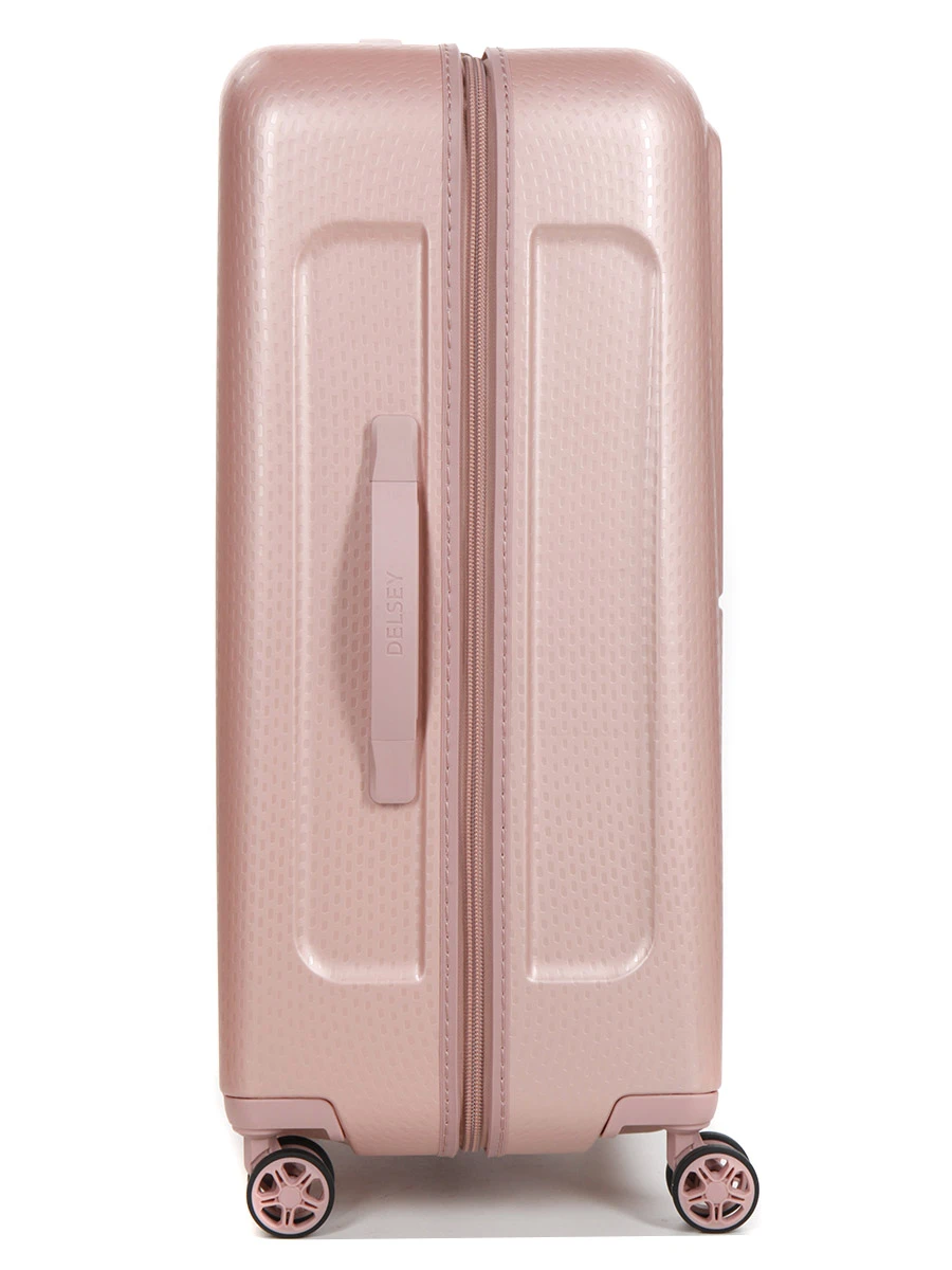 La valise Delsey Turenne est équipée de 4 doubles roulettes multidirectionnelles, afin d’assurer un roulage fluide à 360° et une stabilité optimum à la verticale. Elle se compose aussi d’une poignée de traction ajustable et de 2 poignées de portage flexibles et confortables (supérieure et latérale).